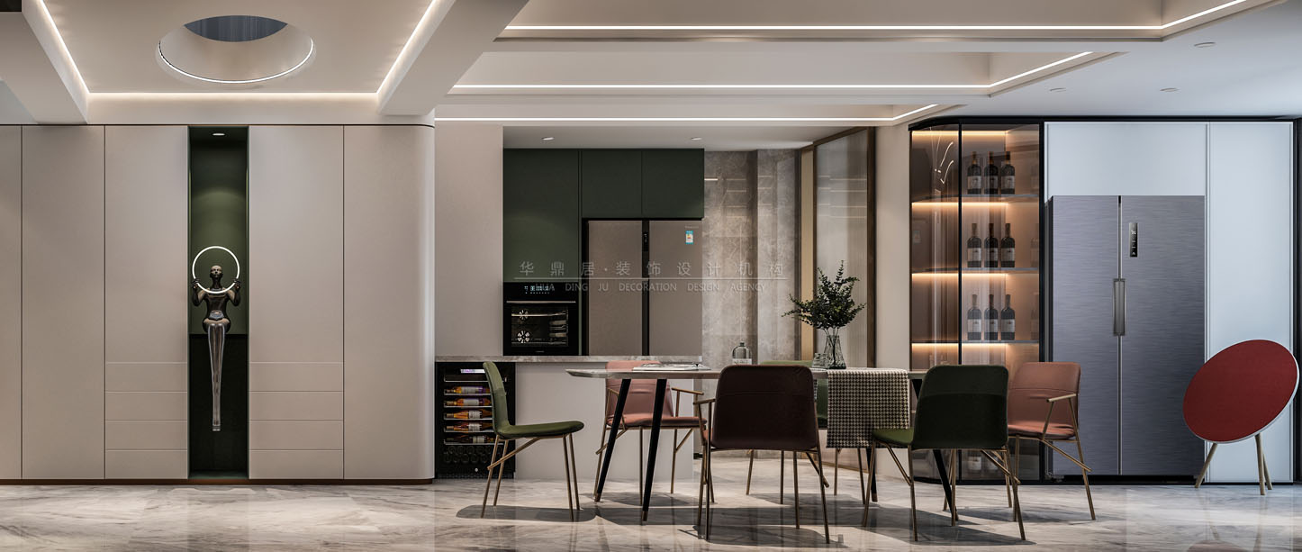 設(shè)計(jì)說(shuō)明:現(xiàn)代派的簡(jiǎn)約風(fēng)格時(shí)尚且有品位。設(shè)計(jì)上細(xì)節(jié)把握,把每一個(gè)細(xì)小的局部和裝飾深思熟慮,以簡(jiǎn)潔的表現(xiàn)形式來(lái)滿(mǎn)足人們對(duì)空間環(huán)境感性的、理性的需求。空間簡(jiǎn)約,色彩就要跳躍出來(lái)。淺藍(lán)、墨綠、大紅等高純度色彩運(yùn)用,大膽而靈活,不單是對(duì)簡(jiǎn)約風(fēng)格的遵循,也是個(gè)性的展示。