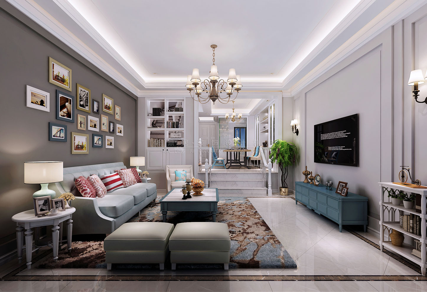 設計說明:在打造地中海風格的家居時,配色是一個主要的方面,要給人一種陽光而自然的感覺,白色和藍色是兩個主打;在造型方面,一般選擇流暢的線條,圓弧形就是很好的選擇;