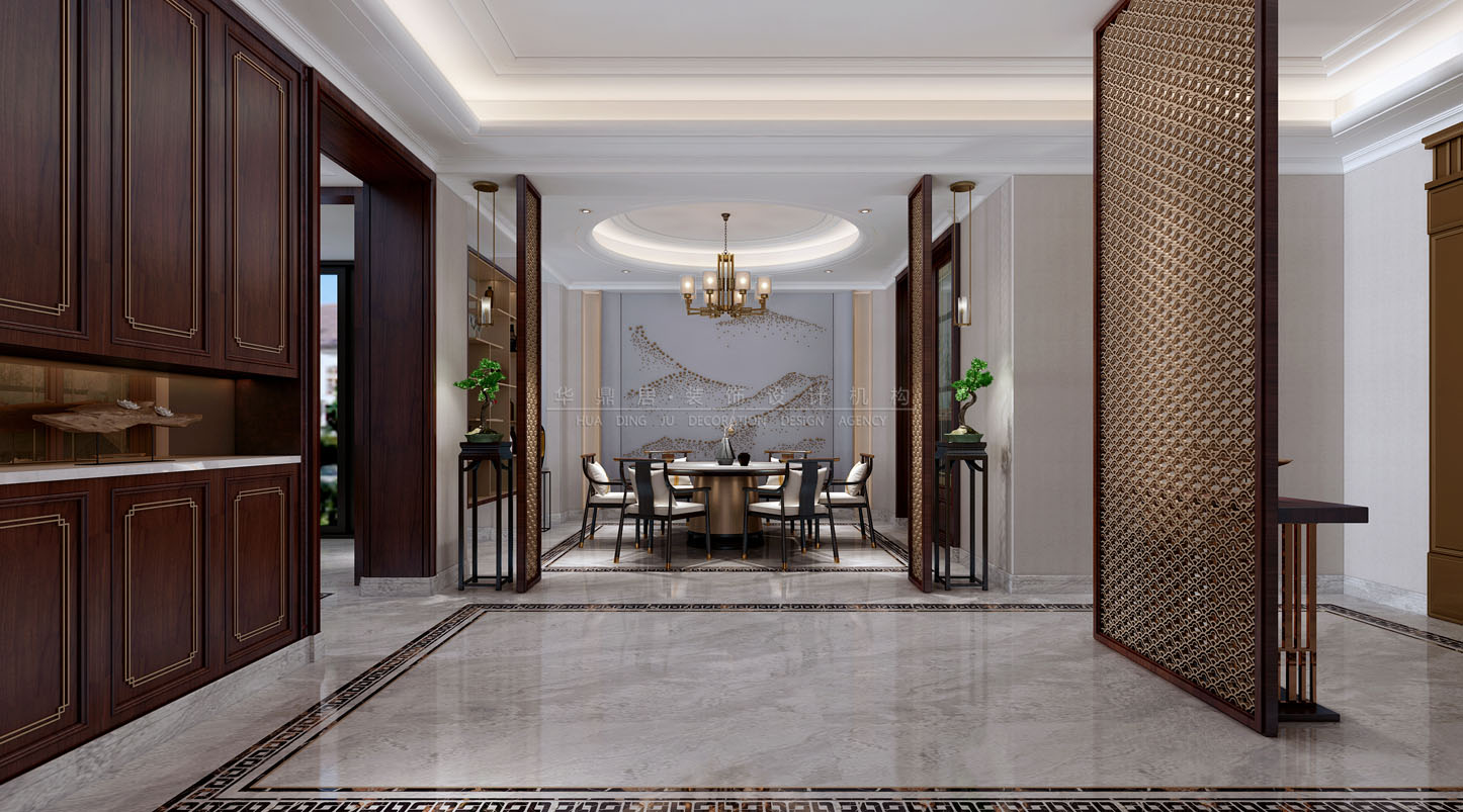 設(shè)計(jì)說明:中國(guó)傳統(tǒng)居室非常講究空間的層次感,這種傳統(tǒng)的審美觀念在"新中式"裝飾風(fēng)格中,又得到了全新的闡釋;講究空間的層次感,在需要隔絕視線的地方,則使用中式的屏風(fēng)或窗欞、中式木門、工藝隔斷、簡(jiǎn)約化的中式"博古架",通過這種新的分隔方式,再以一些簡(jiǎn)約的造型為基礎(chǔ),添加了中式元素,使整體空間感覺更加豐富,大而不空、厚而不重,有格調(diào)又不顯壓抑。