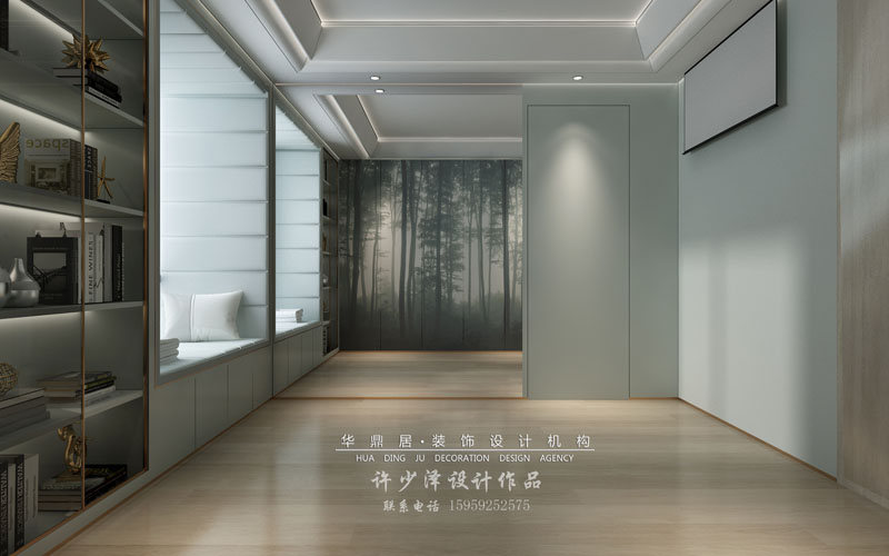 設計說明:客餐廳采用一體化設計,沒有設置隔斷,減少了空間的壓抑感,視覺上也更加通透。多功能房添加了影音設施,為小孩子提供更多共享空間,在設計時推演出最優(yōu)的空間細分尺度,強調(diào)細節(jié)的作用和精心挑選的材料,用它們獨特的特征定義了整個空間,合理的布局加上適當?shù)臄[件給生活足夠的儀式感。