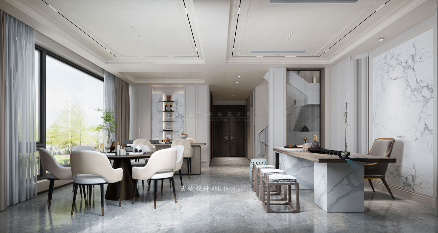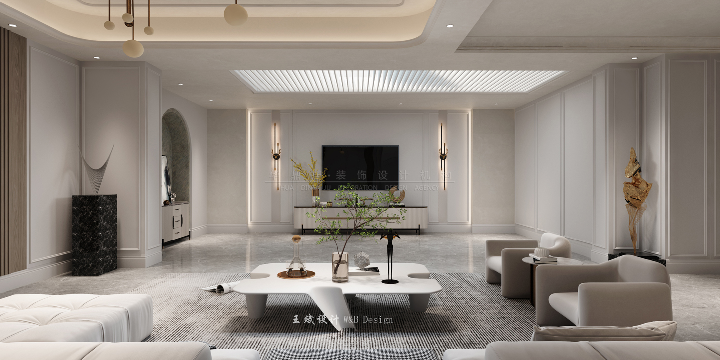 設計說明:設計之初,在客戶的風格導向的基礎上,一直在考慮如何將法式風格與現(xiàn)代品質(zhì)生活自然融合。以現(xiàn)代藝術激發(fā)生活的曼妙和想象力,并疊加上空間的流暢感和穿透性??臻g的材質(zhì)運用盡可能的清新雅奢,在墻面板面線條的帶動下,融合少許實木修飾,達到意境鋪敘的空間美學層次;即豐富了視覺感,也增加了空間的趣味性。