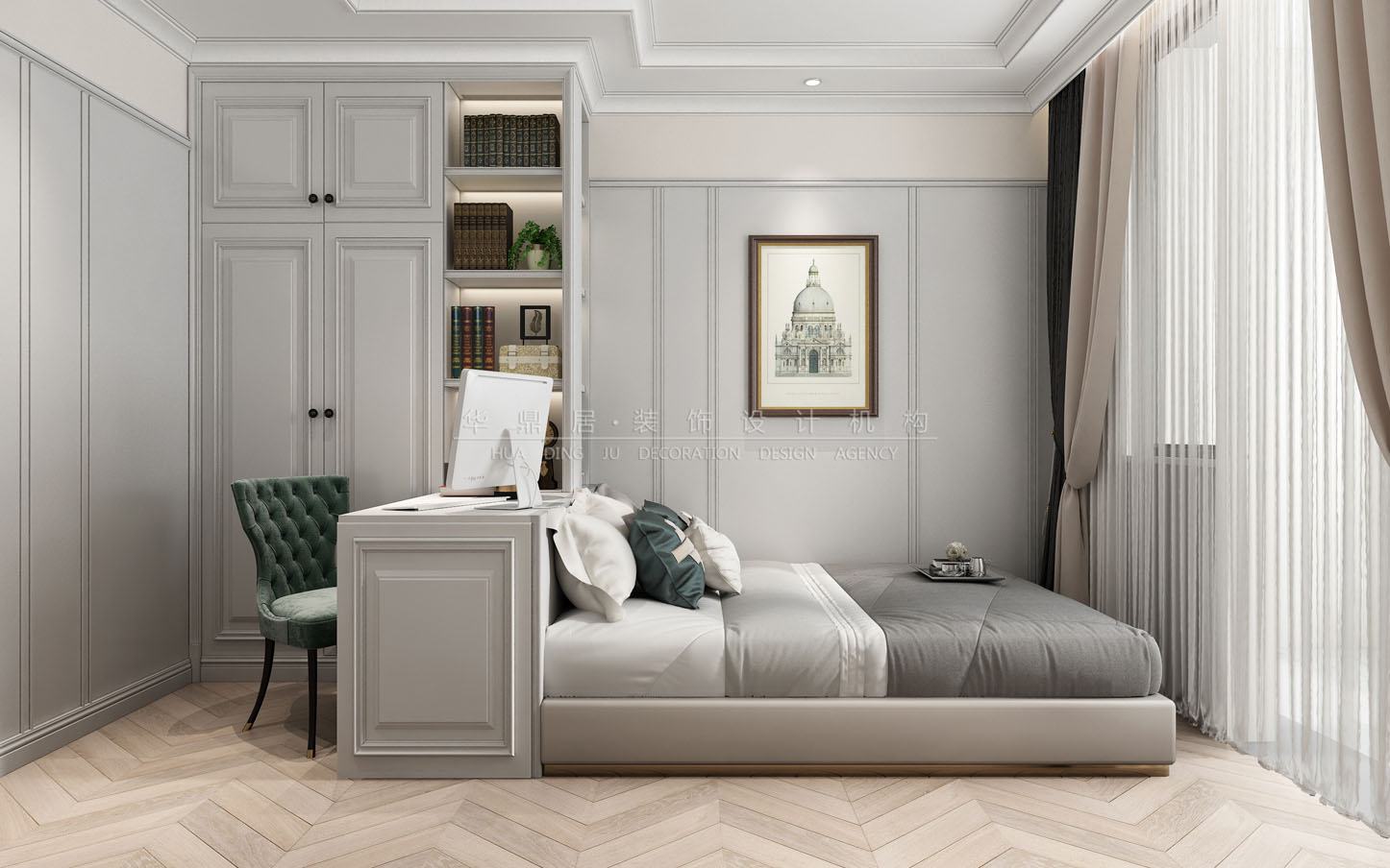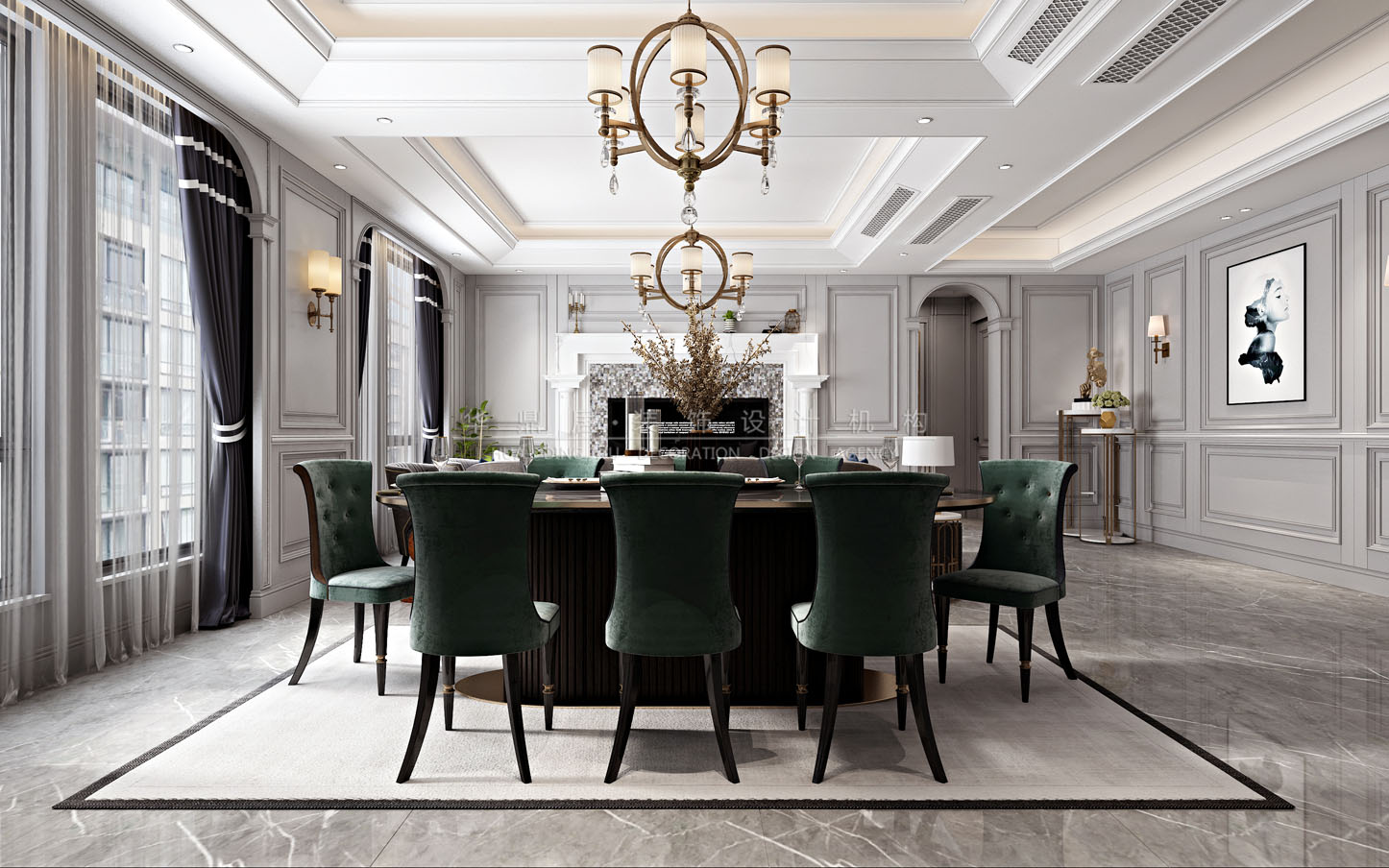 設(shè)計(jì)說(shuō)明:本案為業(yè)主營(yíng)造了大氣和實(shí)用主義相互交融的空間結(jié)構(gòu)和動(dòng)線。風(fēng)格設(shè)計(jì)上奢華又不失雅致,美式風(fēng)格線條不顯得太過(guò)繁復(fù),整屋色彩搭配淺灰色冷調(diào)的啞光面墻板和絨面撞色家具以及淺中灰大板地磚也賦予了空間新的定義,平衡空間美感,讓人感覺(jué)到莊嚴(yán)的氛圍下又不失幾分俏皮,極力呈現(xiàn)了輕奢品質(zhì)。也許這就是設(shè)計(jì)師和業(yè)主的家庭所想要共同詮釋的“家與生活”吧。