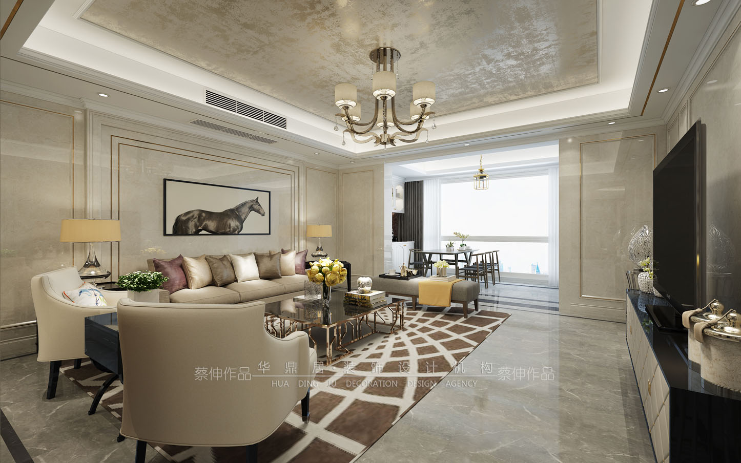 設計說明:本案風格為現(xiàn)代奢華風格,這套200㎡的三室兩廳帶給人莊重與優(yōu)雅的雙重感受,該案例利用現(xiàn)代元素墻板、石材、藝術涂料、現(xiàn)代家具等裝飾,細節(jié)處體現(xiàn)其品味。墻面利用實木、石材、藝術涂料等裝飾.特別受到中年人的追捧,是許多成功人士打造家居環(huán)境的理想選擇。