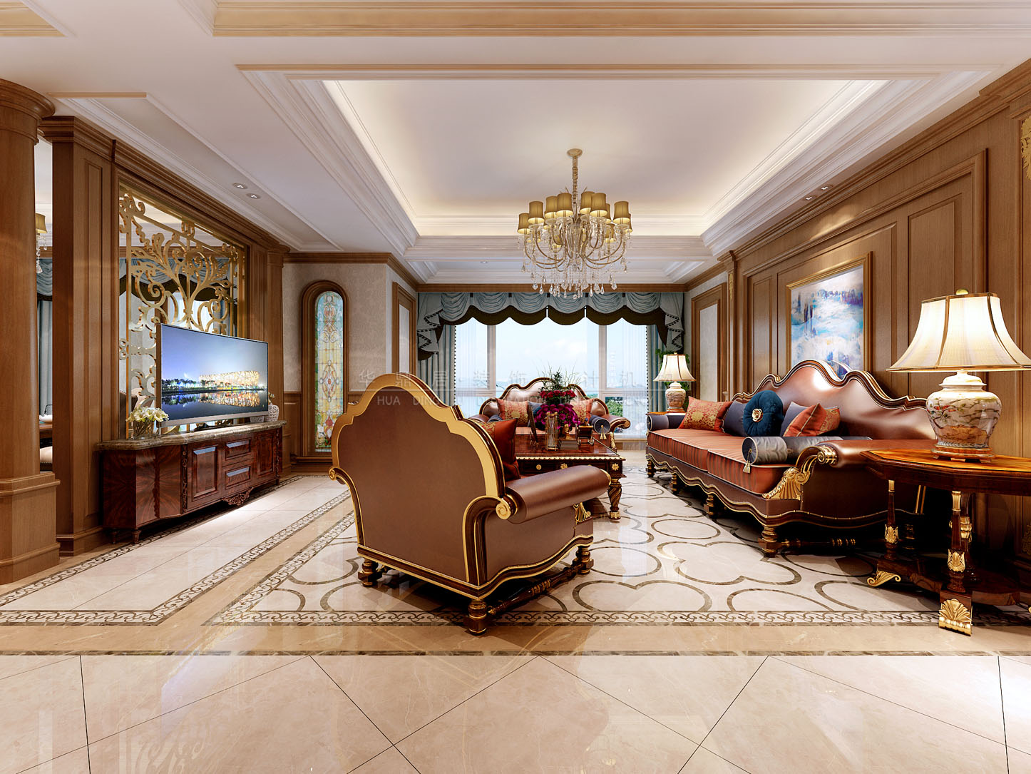 設計說明:美式風格,有著巴洛克的奢侈與貴氣,加大氣而又不失自在與隨意的風格。即:有文化感、有貴氣感,還不缺乏自在感與情調(diào)感。