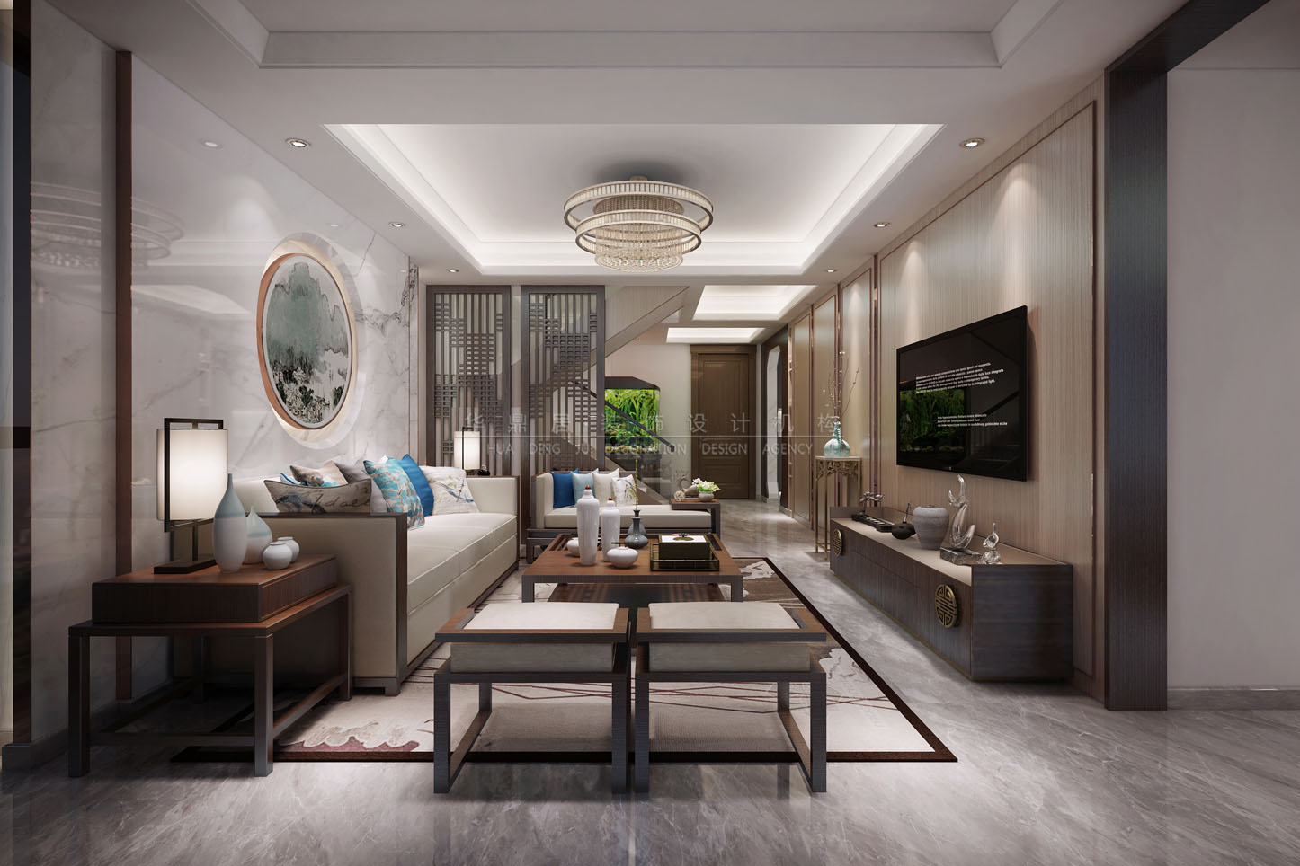 設(shè)計(jì)說明:中國風(fēng)并非完全意義上的復(fù)古明清,而是通過中式風(fēng)格的特征,表達(dá)對清雅含蓄、端莊豐華的東方式精神境界的追求。將現(xiàn)代元素和傳統(tǒng)元素結(jié)合在一起,以現(xiàn)代人的審美需求來打造富有傳統(tǒng)韻味的事物,讓傳統(tǒng)藝術(shù)在當(dāng)今社會得到合適的體現(xiàn)。