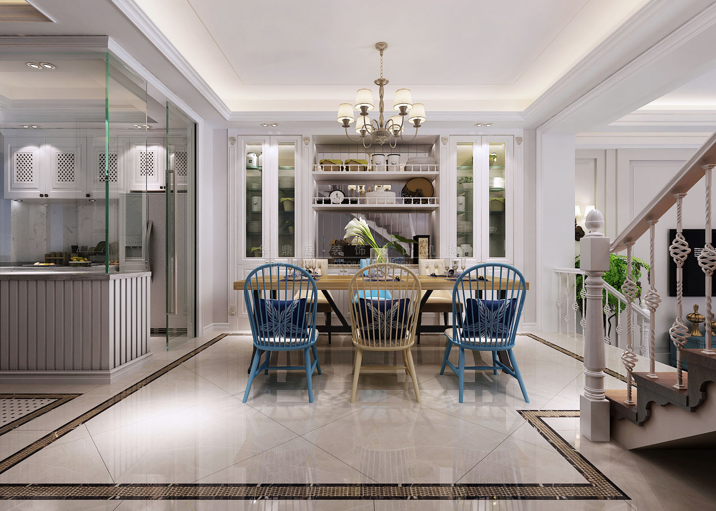 設計說明:在打造地中海風格的家居時,配色是一個主要的方面,要給人一種陽光而自然的感覺,白色和藍色是兩個主打;在造型方面,一般選擇流暢的線條,圓弧形就是很好的選擇;