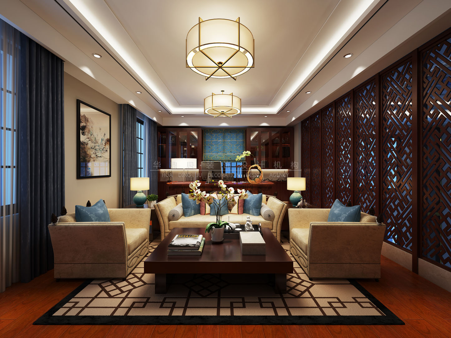 設(shè)計(jì)說(shuō)明:新中式風(fēng)格設(shè)計(jì),既是中國(guó)傳統(tǒng)風(fēng)格文化與現(xiàn)代時(shí)尚元素的融合與碰撞,又是在中國(guó)當(dāng)代文化理解基礎(chǔ)上的現(xiàn)代設(shè)計(jì)。新中式設(shè)計(jì)更是在原來(lái)傳統(tǒng)中式的風(fēng)格上添加了一些時(shí)尚的現(xiàn)代元素,是現(xiàn)代風(fēng)格與中式風(fēng)格的完美融合。