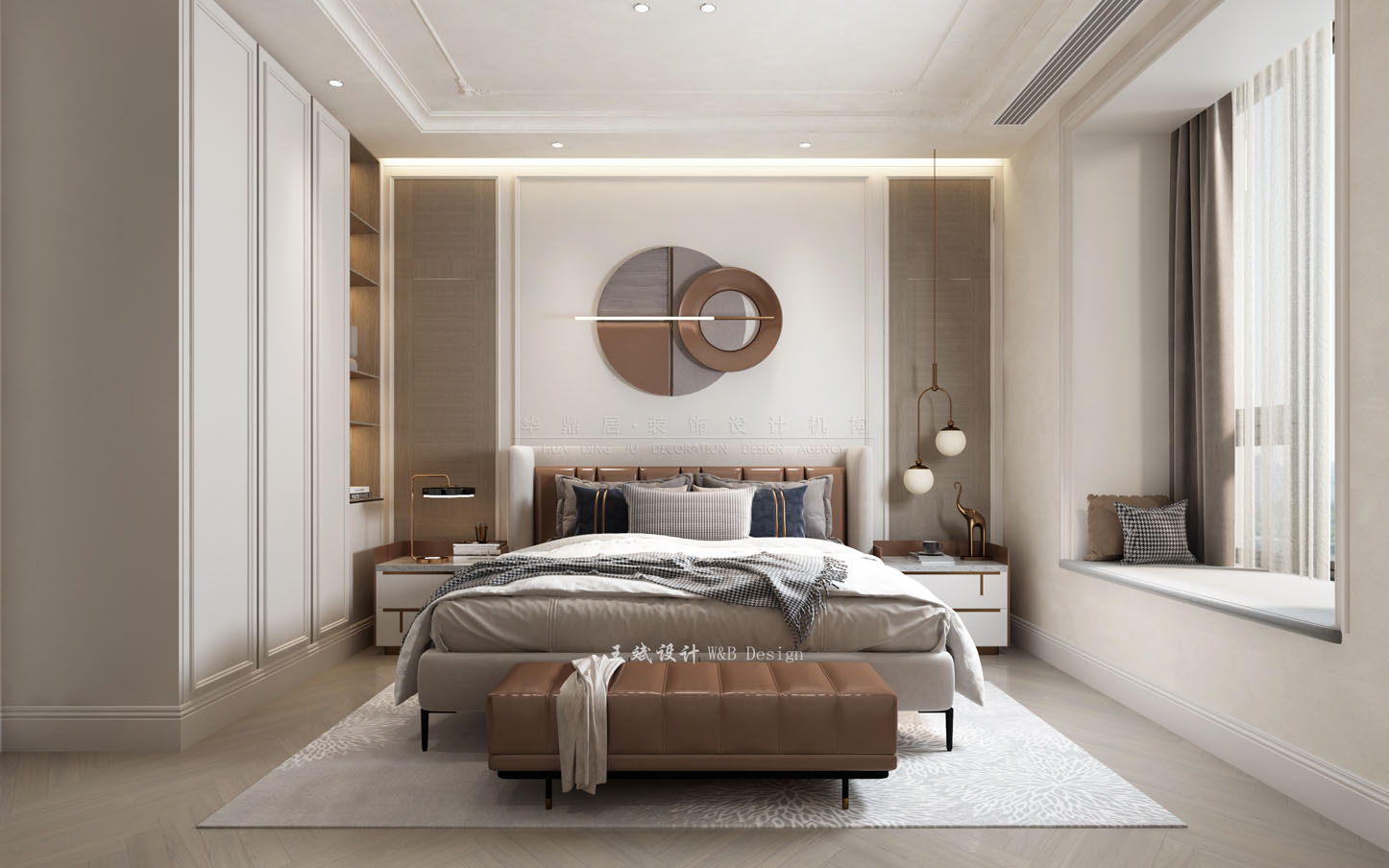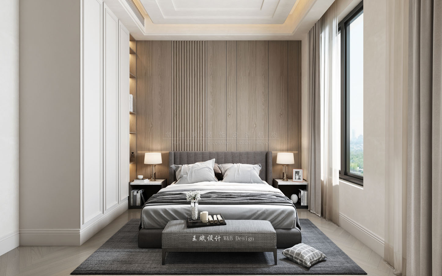 設計說明:設計之初,在客戶的風格導向的基礎上,一直在考慮如何將法式風格與現(xiàn)代品質(zhì)生活自然融合。以現(xiàn)代藝術激發(fā)生活的曼妙和想象力,并疊加上空間的流暢感和穿透性??臻g的材質(zhì)運用盡可能的清新雅奢,在墻面板面線條的帶動下,融合少許實木修飾,達到意境鋪敘的空間美學層次;即豐富了視覺感,也增加了空間的趣味性。