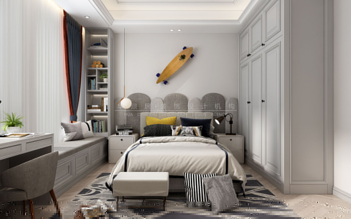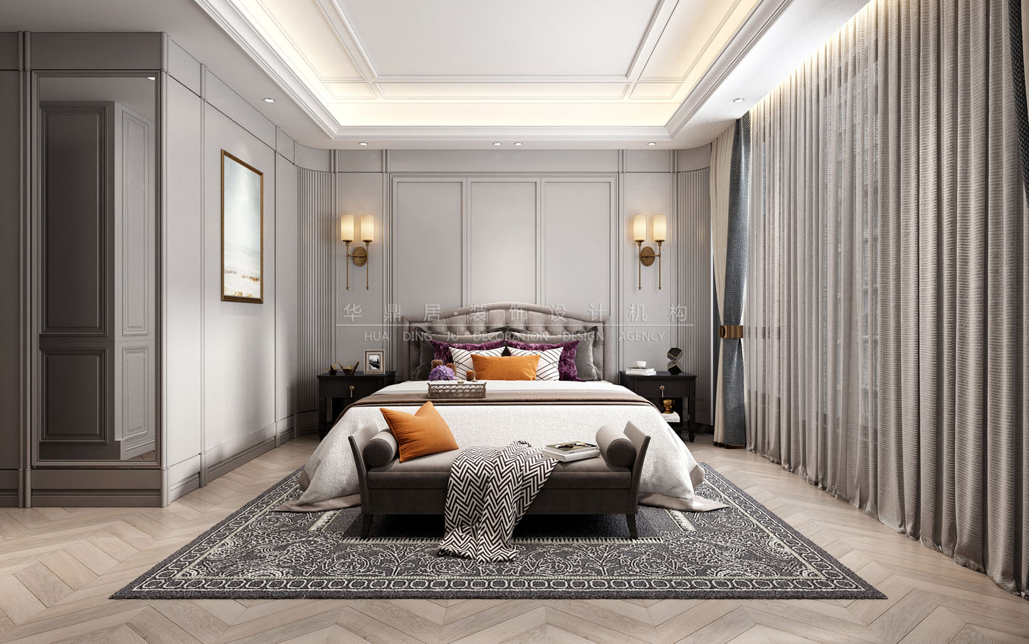 設(shè)計(jì)說(shuō)明:本案為業(yè)主營(yíng)造了大氣和實(shí)用主義相互交融的空間結(jié)構(gòu)和動(dòng)線。風(fēng)格設(shè)計(jì)上奢華又不失雅致,美式風(fēng)格線條不顯得太過(guò)繁復(fù),整屋色彩搭配淺灰色冷調(diào)的啞光面墻板和絨面撞色家具以及淺中灰大板地磚也賦予了空間新的定義,平衡空間美感,讓人感覺(jué)到莊嚴(yán)的氛圍下又不失幾分俏皮,極力呈現(xiàn)了輕奢品質(zhì)。也許這就是設(shè)計(jì)師和業(yè)主的家庭所想要共同詮釋的“家與生活”吧。